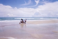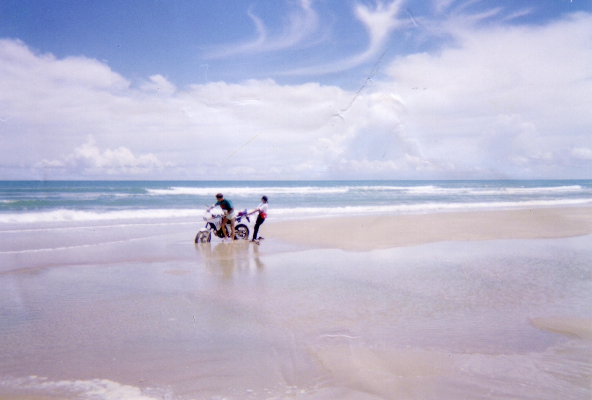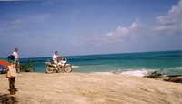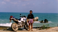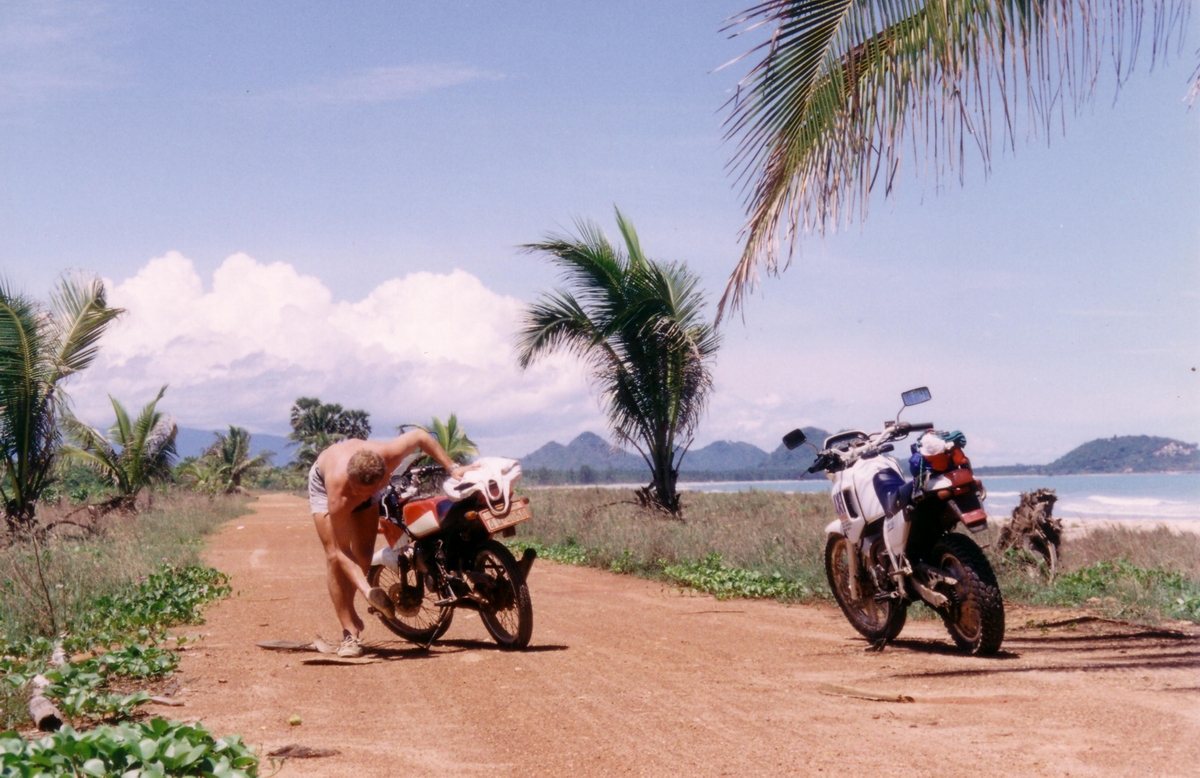 Here on the Beach-road at Ban-Sapan on the way to the Big Buddha in the mountains in front. On a beach like this I could not resist and drove along the water. That's real fun. But, sometimes also a little bit tricky. On the right photo you see what I mean.