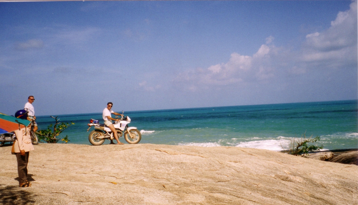 From Ban Sapan I drove to Ko-Samui, a famous Island in the gulf of Thailand, where I stayed also about 3 weeks. Beach fire, guitars, barbecue, and small bungalow directly on the beach, boot-trips in the marine-park and to Ko-Phangan famous for the full moon party's. A lot of backpack-tourists, waterfalls in the dschungle and a lot more. At Ko-Samui I made a lot of tours by feed in the dschungle and when I was bored of beach and to do nothing I was on the way to Had Yai and to Malaysia down the road No.4.