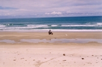 From Chiang-Mai I drove to Mae-Hong-Song and back and over Pitsanalok, Uhtai Thani, Lop Buri to Bangkok and from there over Hua Hin to Ban-Sapan a small village near Chumphon. I read in the Bangkok-Post that in Ban-Sapan is one of the longest beaches in Thailand, so I liked to take a look at this and it was really amassing. A small fisher-village with a few bungalow resorts on one side the beach and the other side the mountain, the border to Burma. A big Buddha on a mountain, gold-fields, caves and a really pretty large beach without any tourists.