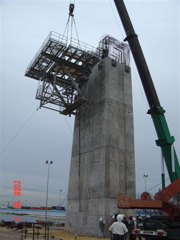 I operated and supervised one of the largest ‘Launching Gantries’ in the world. It is 184.4 metres long, equipped with two winches to lift segments up to 128 tons. We assembled ‘balanced cantilever’ spans of 75m between piers. For end-spans the launcher was built to take a weight of approximately 900 tons, and able to hang 9 segments with special stress-bars...
